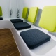Mit erheblichem Aufwand wurden hochwertige Materialien wie z.B Glas bei den Oberlichtern und Corian bei der Empfangstheke, dem hinterleuchteten Praxislogo und den Glastürgriffen unter Hitzeeinwirkung verformt bzw. mit Hilfe von CNC Bearbeitung gefertigt. Gerundete Raumwandelemente wurden in Sandwichbauweise hergestellt und mit Hilfe von CNC gefertigten Hilfsformteilen mittels Vakuumpresse in Form gebracht.