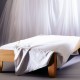 Ist in Ihrem Leben Platz für Bettgeschichten? In diesem Bett schon: auf der Buchablage! "Rolliges" Modell (mit Industrierollen) aus massivem Ahorn.