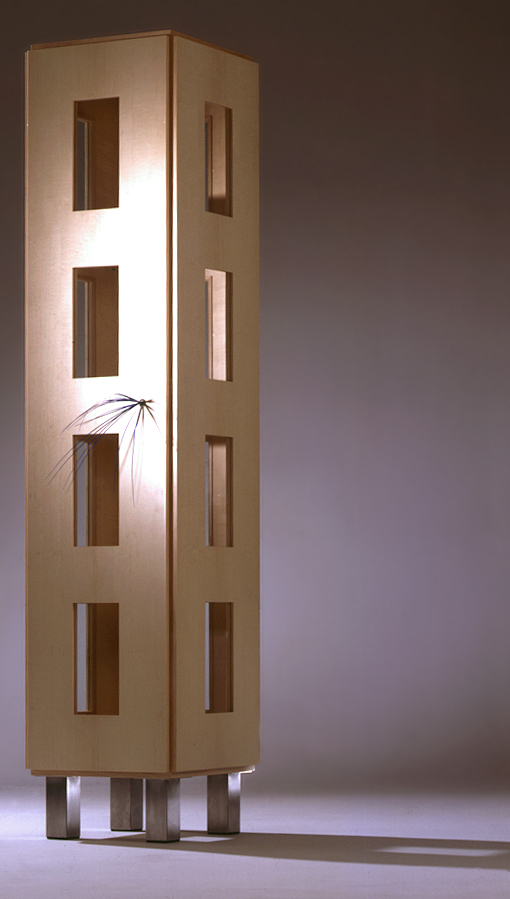Mal ehrlich: Muss da noch etwas rein? Schmucker Vitrinenschrank aus furniertem Ahorn, Glas und Edelstahl.