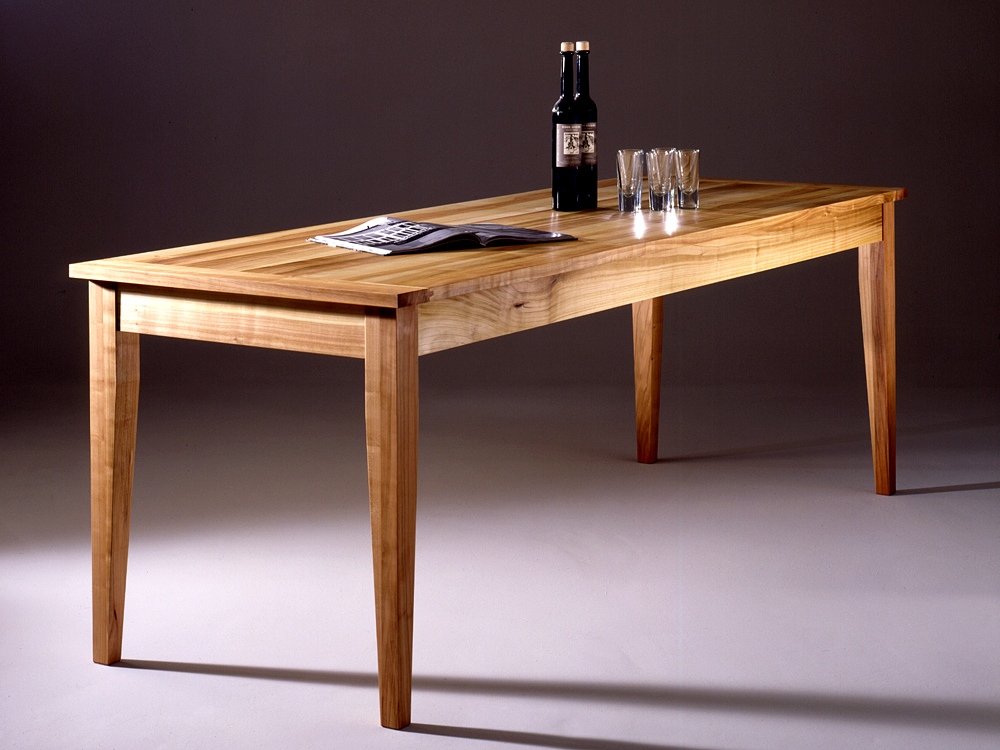 An diesem Tisch ist gut Kirschen essen. Mit ihm allerdings weniger: An dem massiven Kirschbaumholz beißen Sie sich die Zähne aus.